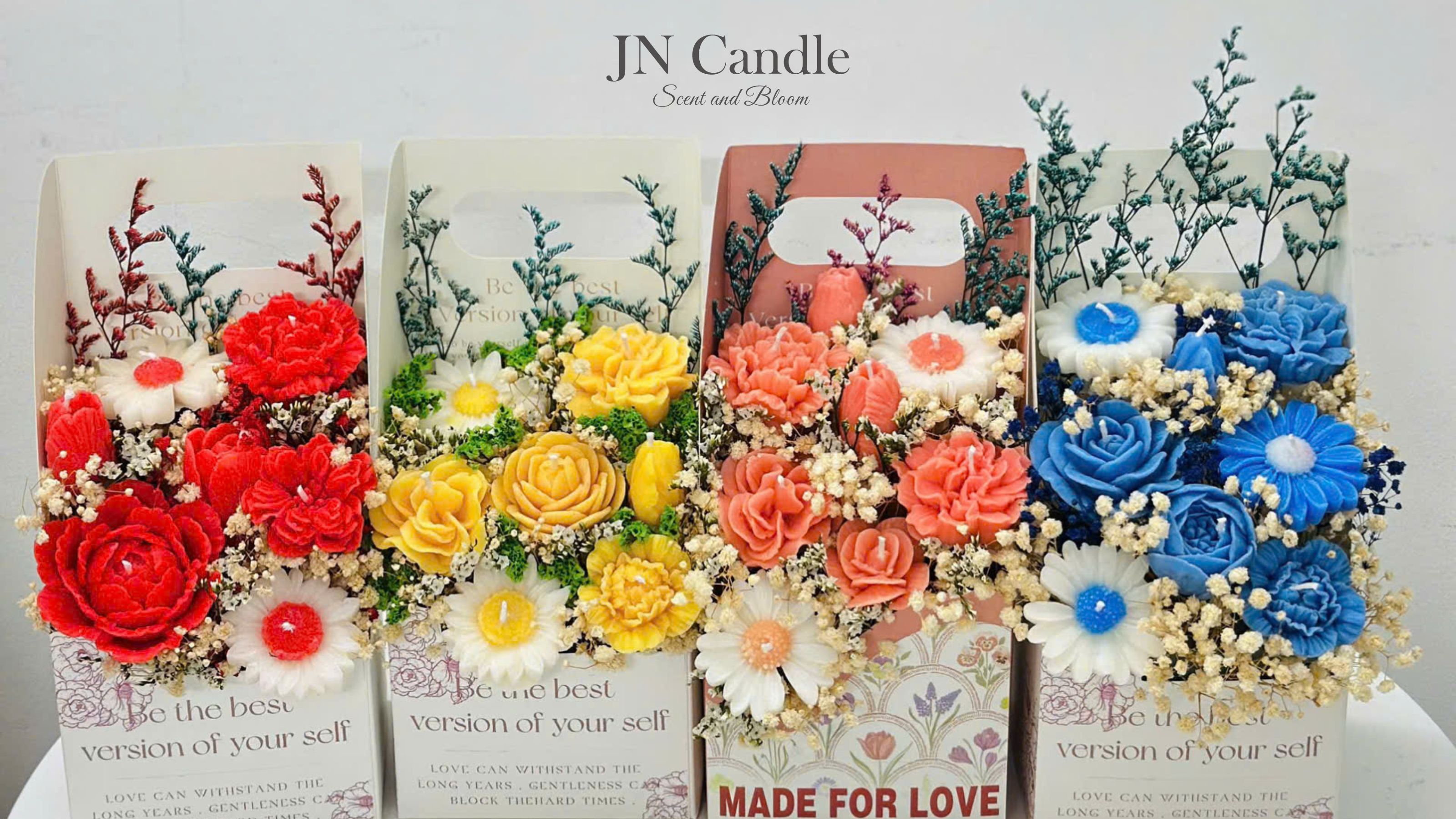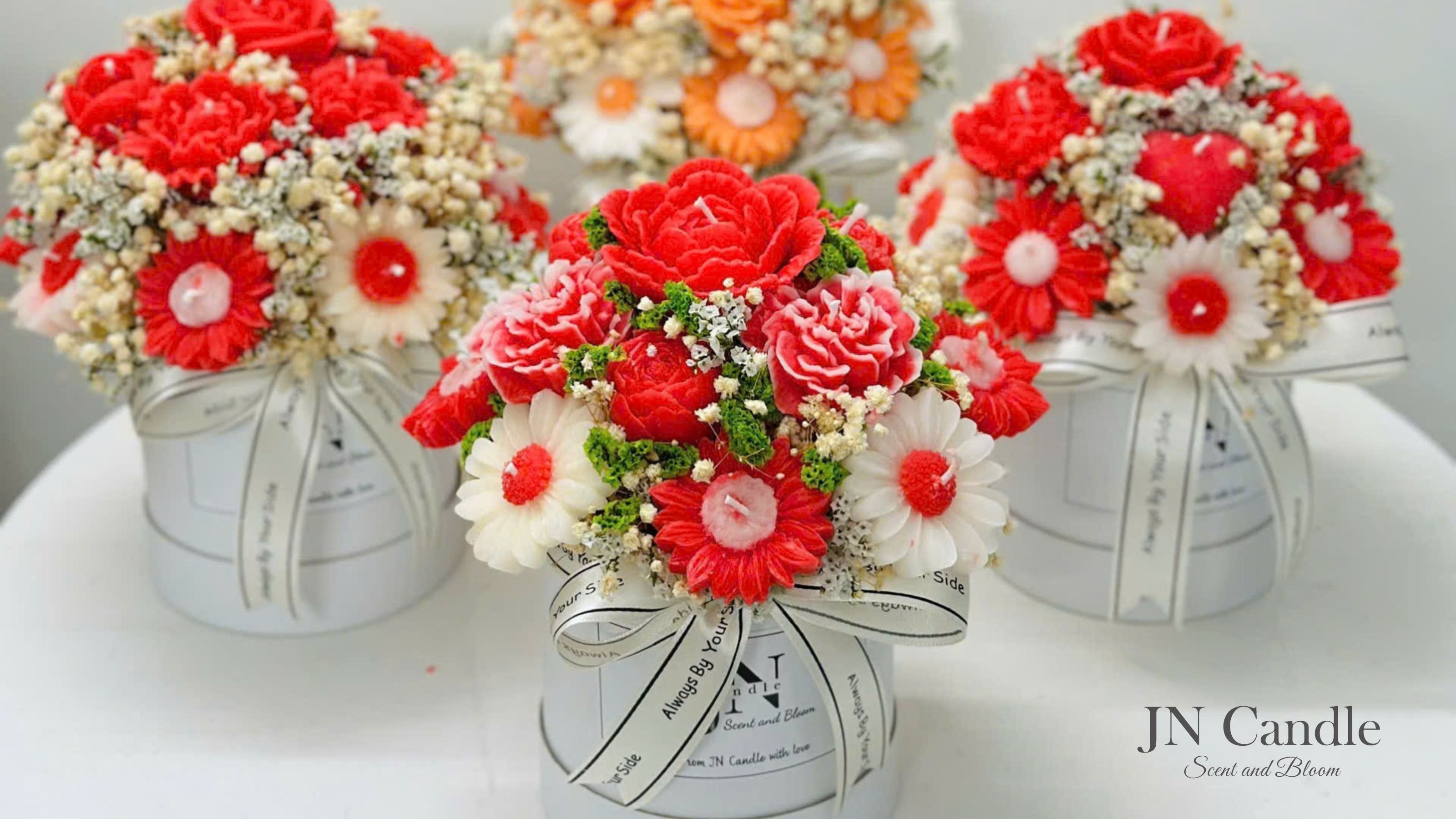 Gợi ý hoa chúc mừng 20/10 độc đáo – Hộp trụ hoa nến thơm JN Candle